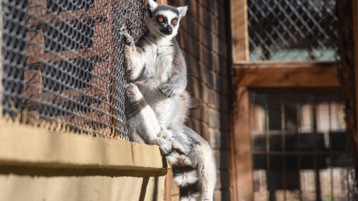 Antalya Doğal Yaşam Parkı'nda bulunan lemurlar, kış rutini olarak güneşlenerek güne başlıyor ve yoga yapar gibi oturuyor.