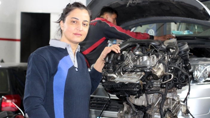Çocuklarının kendisine 'anne usta' diye hitap ettiğini belirten 8 yıllık oto tamirci 37 yaşındaki Döndü Aslan, "Öncesinde sadece anneydim, şimdi anne usta oldum" dedi.