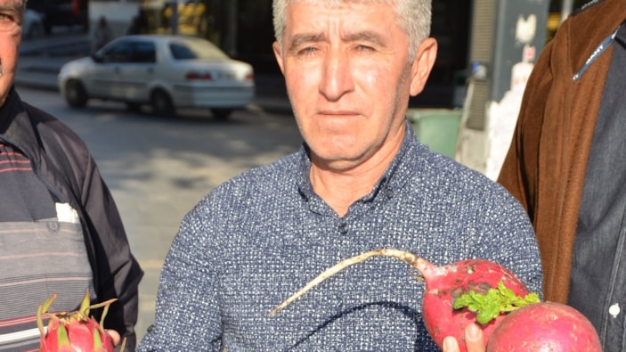 Antalya Serik'te yaşayan üretici Beyazıt Işık, ABD'deki başkanlık seçimini Donald Trump'ın kazanmasının ardından yaklaşık 500 kilo turp ile 2 bin ejder meyvesini halka ücretsiz dağıttı.