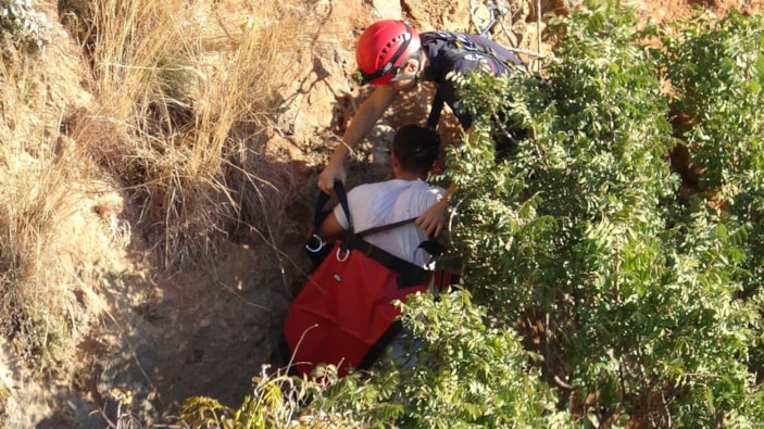Uygunsuz şekilde gördüğü kişiyi uyarmak için 35 metre yükseklikteki kayalıkların arasına giren Nurettin M. A., bölgede mahsur kaldı.