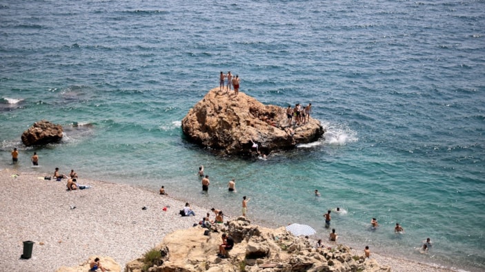 Hava sıcaklığının öğle saatlerinde 25 dereceye ulaştığı turizm kenti Antalya'da, sahiller doldu.