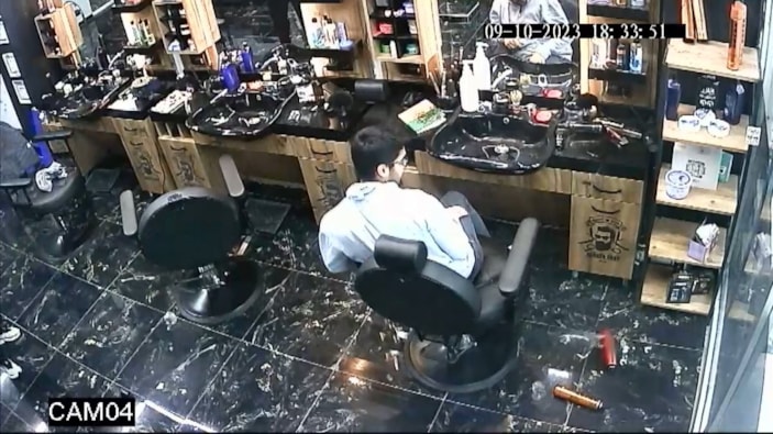 Arnavutköy'deki berberde yere düşen sprey ilginç anlara neden oldu