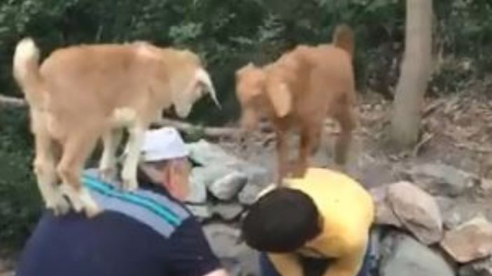 Günlük köy işleriyle uğraşan Mevlüt Gökdemir’in iş yapmasına izin vermeyen oğlaklar, sahipleriyle sürekli oynamak istiyor.
