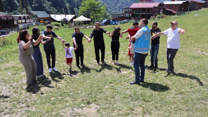 Rize’nin Ayder Yaylası’nda kurulan stantta, ziyaretçiler ideal kilolarını öğrendi; fazla kilosu olanlar horon oynayarak kalori yaktı.