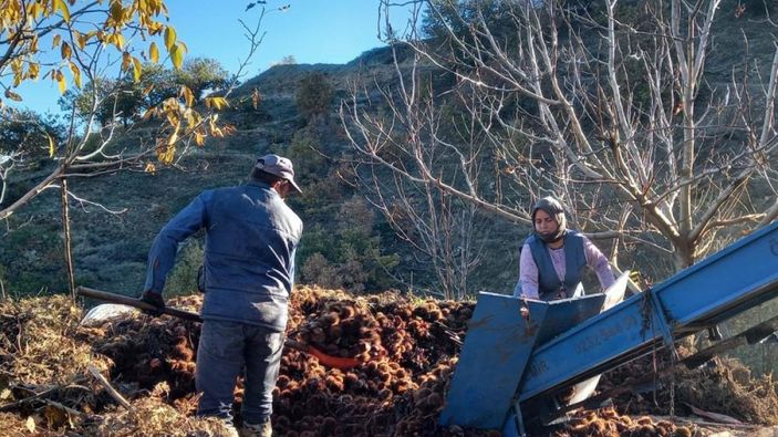 Yapılan hasat sonrası kuyulara doldurulan kestaneler, çıkarılmaya başlandı.