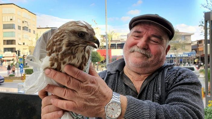 Aydın'da bir kişi bitkin haldeki şahini, Hakkı Bulut'la canlandırdı VİDEO
