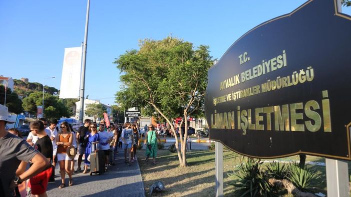 İstanbul, İzmir, Bursa, Ankara, Muğla, Balıkesir, Manisa ve Kocaeli gibi büyükşehirlerden gelen tatilciler, Ayvalık Deniz Hudut Kapısı önünde kuyruklar oluşturdu.