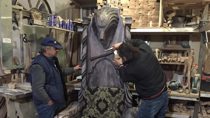 Ahşap ustası Mesut Çiftçi, "İki arkadaş olarak bunu yaptık. Azerbaycan'dan bir müşterimiz bunu istedi. Çok etkilenmiş Atilla'nın tahtından, kendisi bize bir fotoğraf olarak başvurdu. Biz de baktık yapabileceğimizi söyledik, çeşitli anlaşmalar yaptık. Yaparken çok acele etmedik, kurdun yüz yapısı, diş yapısı, tüm yapısını yansıtmaya çalıştık. Biraz da başardık sanırım, sonuçta ortaya bu çıktı. İstanbul'da, Ankara'da, yurt dışında olsun İnegöl mobilyası zaten Türkiye'de tanınıyor. İtalya'yı yakalamış durumdayız. Ama bizim gibi ustalar da azalıyor maalesef. Daha çok makineleşme olduğu için el emeği ve sanat üzerine yapılmış tasarımlar biraz geri planda kalıyor." dedi.