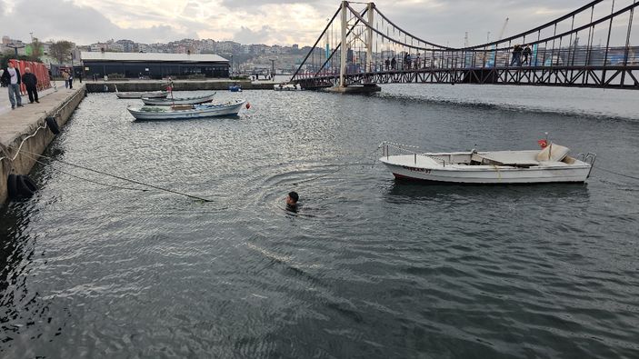 İddiayı kaybeden genç, soğuk havaya rağmen Sevgi Köprüsü üzerinden denize atladı.