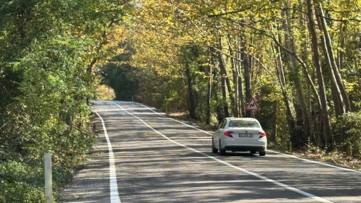 Yaprakların yola düşmesiyle görülmeye değer bir manzara sunan yoldan geçen sürücüler, keyifle yolculuk yapıyor. Yolda sıra sıra dizili olan kavlak ağaçları renk cümbüşüyle ayrı bir güzellik sunuyor.