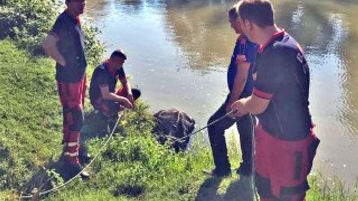 Irmakta çırpınan mandayı gören vatandaşlar, AFAD’a haber verdi.