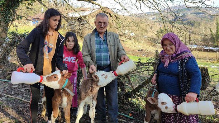 Bartın'da üçüz buzağılar bebek gibi bakılıyor