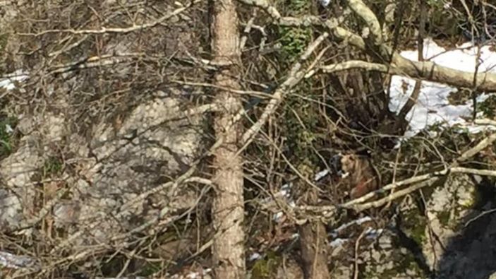 Bartın’ın Ulus ilçesine bağlı Ulukaya köyünde kış uykusundan kalkan bozayının kayalık bölgede yiyecek aradığını fark eden Ahmet Açıkgöz (39) cep telefonu ile o anları kaydetti.