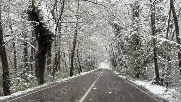 Bölgede iki tarafı ve üstü ağaçlarla sarılı olan, "Ağaç tünel yol" olarak bilinen kara yolundaki ağaçlar beyaz örtüyle kaplandı.