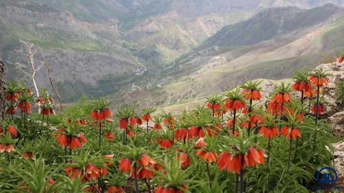 Sason ilçesinde dağlık bölgelerde açan, halk arasında "ağlayan gelin" ve "hüzün çiçeği" olarak adlandırılan baharın müjdecisi ters laleler görsel şölen sunuyor.