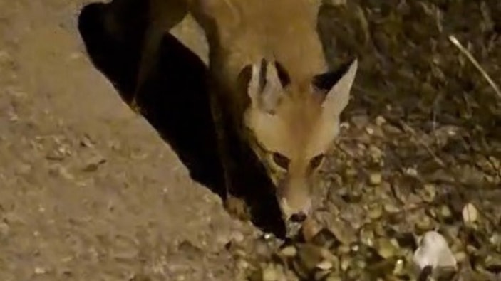 Bayburt'ta vatandaşın ürkek aç tilkiyle imtihanı cep telefonuna yansıdı