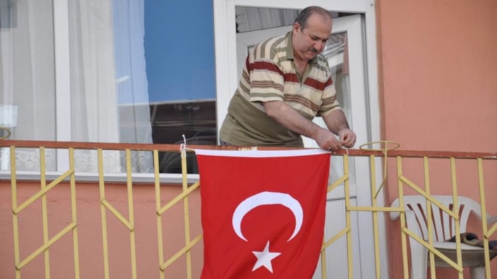 'Bayrak asan dayı' lakaplı fenomen Salih Tahtalıoğlu, 100. yıl için balkona çıktı
