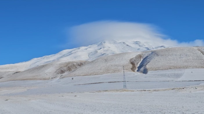 Bitlis'in Adilcevaz ilçesi sınırları içerisinde bulunan 4 bin 58 rakımıyla Türkiye'nin üçüncü büyük dağı olan Süphan Dağı, karla kaplandı.