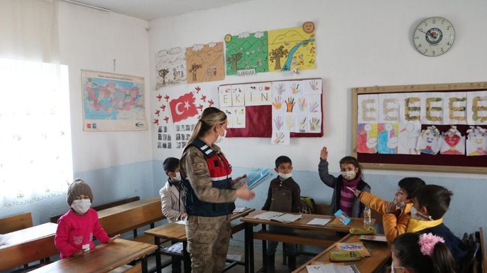 Bitlis’in Adilcevaz İlçe Jandarma Komutanlığı personeli, Gümüşdöven Köyü İlkokulu'nu ziyaret etti.