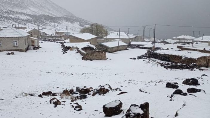 Bitlis'in Adilcevaz ilçesine bağlı Aydınlar Beldesi’nin Süphan Dağı eteklerindeki Kışkılı köyünde Mayıs ayında kar yağışı etkisini sürdürüyor.