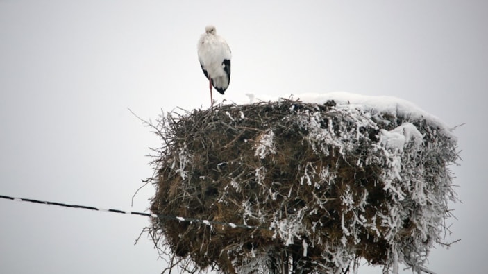 Yılladır göç etmeyen leyleğin kar yağışında bile yuvasını terk etmediği ve bölgedeki sazlıklardan zaman zaman beslendiği gözlendi.
