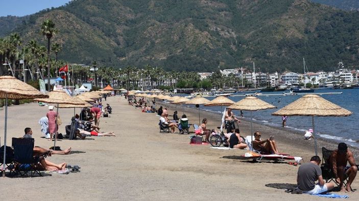 Güney Ege'nin turizm merkezlerinden Marmaris'te yerli ve yabancı turistler sahilleri hareketlendirdi.