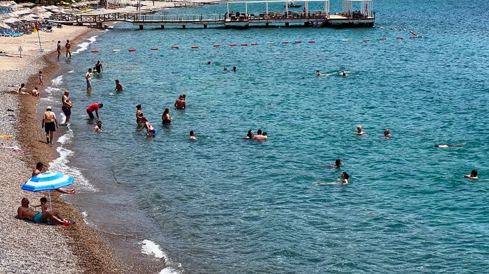 Bodrum'da hava sıcaklığı 48 dereceye yükseldi: Vatandaşlar sahile akın etti