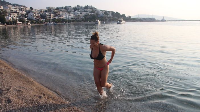 Uzun sürü güneşlendikten sonra denize girerek serinleyen Nataliia kendini özel hissettiğini söyleyerek “Su çok güzel, sıcak ve serinletici deniz. Sahil çok ıssız ama bu halini çok sevdim. İnanılmaz güzel bir yer Bodrum, çok güzel bir enerjisi var. Kendimi özel hissediyorum, böyle bir günde ama şanslı demiyorum, çünkü herkesin bu şansı yok. Birçok yerde kış yaşanıyor, bizim ülkemizde de kış yaşanıyor. Denize giremezler çünkü kış her yerde. Şu anda çok keyif alıyorum denize girmekten” dedi.