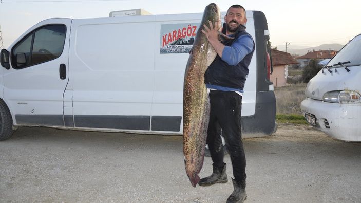 Burdur'da 2 metrelik yayın balığı yakaladı