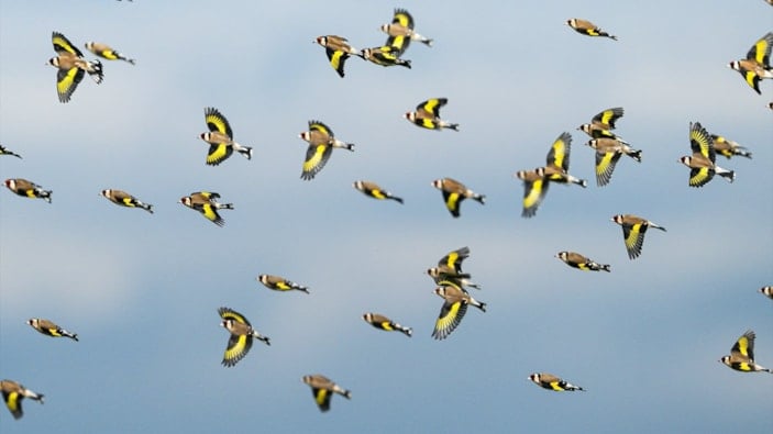 Bursa’nın kırsal bölgelerinde doğaseverlerin dikkatini çeken saka kuşları, sürüler halinde uçarken görsel bir şölen sundu. Uçuş sırasında kanatlarındaki belirgin sarı renklerle öne çıkan kuşlar, kırlarda hareketli görüntüler oluşturdu.