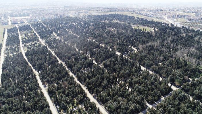 Yüzde 10'luk boş yeri kalan Hamitler Kent Mezarlığı'nın son hali ise drone'la havadan görüntülendi.
