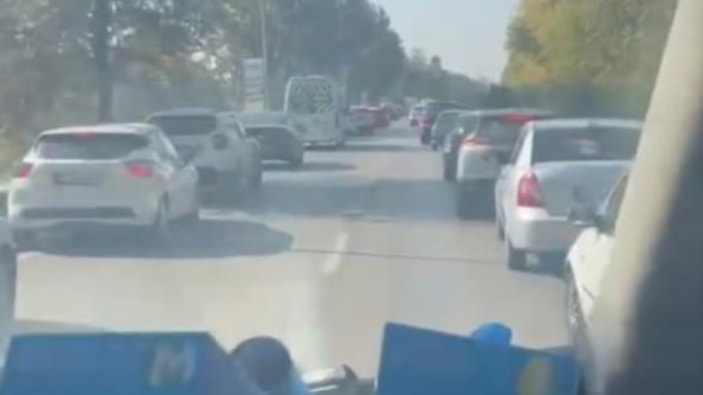 Sirenleri çalarak ilerleyen ambulansı gören sürücüler, ‘fermuar sistemi’ oluşturarak ambulansa yol verdi.