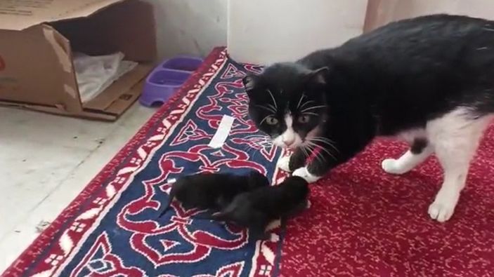 Bursa’nın Mustafakemalpaşa ilçesinde Züferbey Camii’nde bir kedi, yavru dünyaya getirdi.