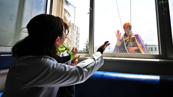 Bursa'da duvara tırmanıp, kanserli çocuklara 23 Nisan hediyesi verildi