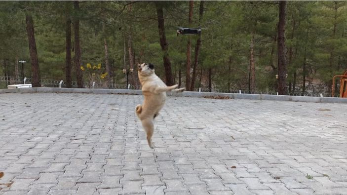 İlk kez drone gören köpeklerin heyecanı gözlerden kaçmadı. Köpeklerin drone kovaladığı anlar, kameraya yansıdı.