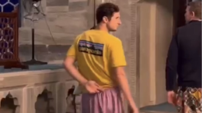 Yıldırım ilçesinde tarihi Yeşil Cami'ye şortla girmemek için mekanda kadınlara yönelik bulundurulan etekleri şortlarının üzerine giyen erkek turistlerin videosu sosyal medyada dikkat çekti.