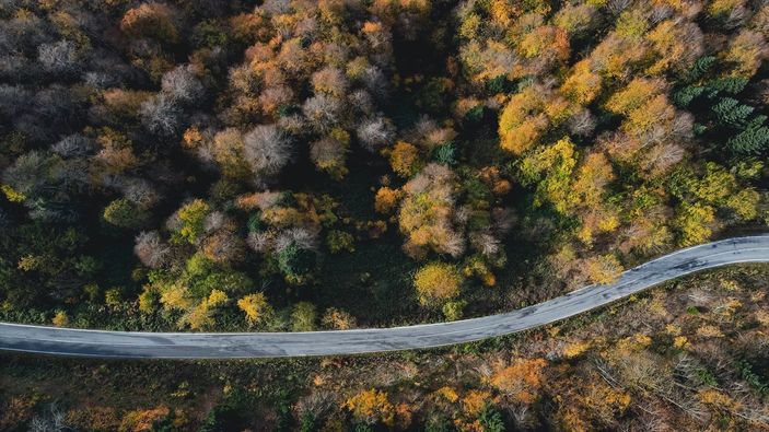 Çam Dağı'ndaki sonbahar güzelliği, adeta bir tabloyu andırırken, bölgedeki kıvrımlı yollardan geçenler eşsiz manzara eşliğinde yolculuk yapma imkanı buluyor.
