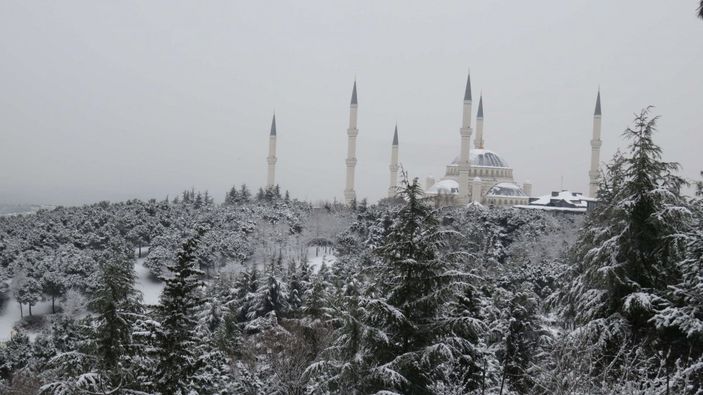 İstanbul'da beklenen kar yağışı başlarken, kentin yüksek kesimleri beyaza büründü. Beyaza bürünen yerlerden birisi olan Çamlıca Tepesi, seyrine doyulmaz bir manzara oluşturdu.