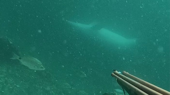 Çanakkale'nin Eceabat ilçesi açıklarında 15 metre derinlikte levrek avı için suya giren Kerem Atasev, bu sırada beklemediği bir görüntüyle karşılaştı.