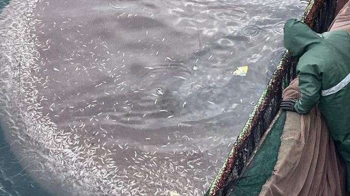 Gırgır teknesinin ağlarına, 5 tona yakın yasal boyda olmayan istavrit takıldı. Teknenin reisi Erhan Çiftçi, sürdürülebilir balıkçılık için tonlarca balığı geri bıraktı.