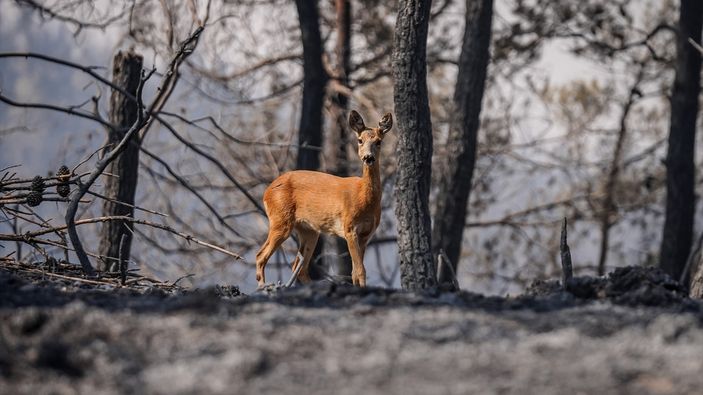 Çanakkale'deki yangında alevlerden kaçan karaca görüntülendi