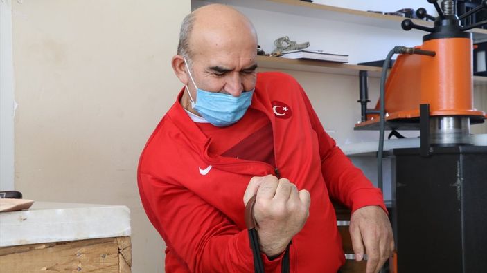 Atölyesinde deri ürünleri imalatı yaparken bir yandan da antrenmanlarını sürdüren bedensel engelli milli sporcu, "Hiçbir şey bana engel değil. Engelli arkadaşlarımızın evlerde durmasın" dedi.