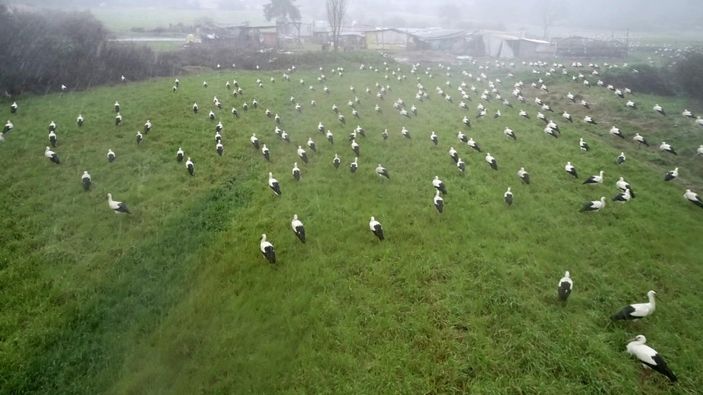 Yağışın bitmesini bekleyen leylekleri, Çekmeköy Belediyesi gözetim altında tuttu.
