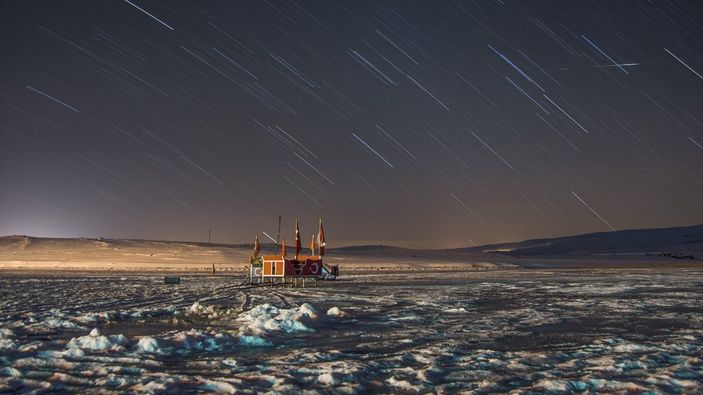 Kars-Ardahan sınırları içerisinde yer alan Çıldır Gölü, gece yıldızların görsel şölenine ev sahipliği yapıyor.