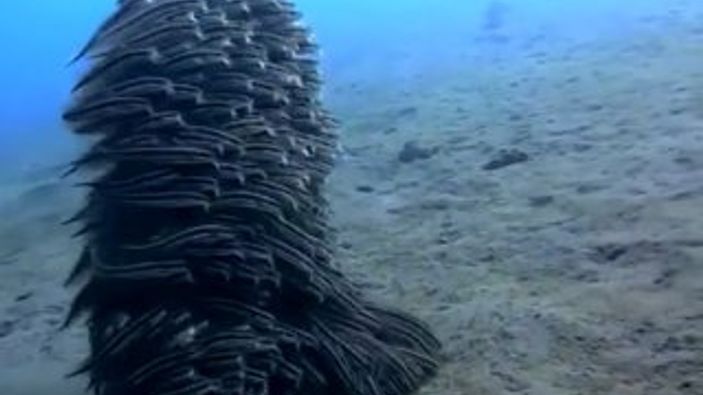 Korunmak için tek bir canlıymış gibi hareket eden balıklar İZLE