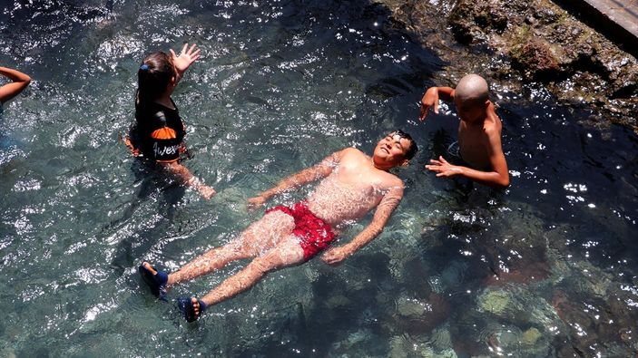 Aksel, "Bazen nefes almakta zorlanıyoruz. Soğuk, buzlu suları alnımıza, boynumuza koyarak, gölgede oturup serinlemeye çalışıyoruz." ifadelerini kullandı.