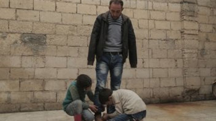 Suriye'de Esad rejimi saldırılarında ellerini kaybeden Abdühallak Gaddur'un, her işini 11 ve 12 yaşındaki çocukları yapıyor.