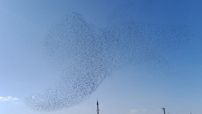 Gökyüzünde beliren sığırcıkların dans eder gibi uyumlu uçuşu dikkat çekti.