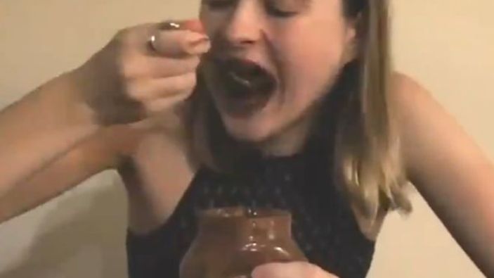 Dakikalar içinde 1 kilogram çikolatayı bitirdi VİDEO