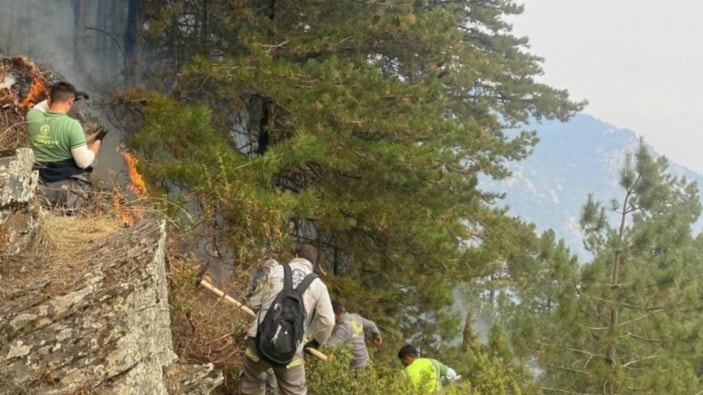 Denizli Orman Bölge Müdürlüğü'ne bağlı Çameli Orman İşletme Müdürlüğü'nden gelen ateş savaşçıları, sarp arazide hiçbir engel durduramadı.